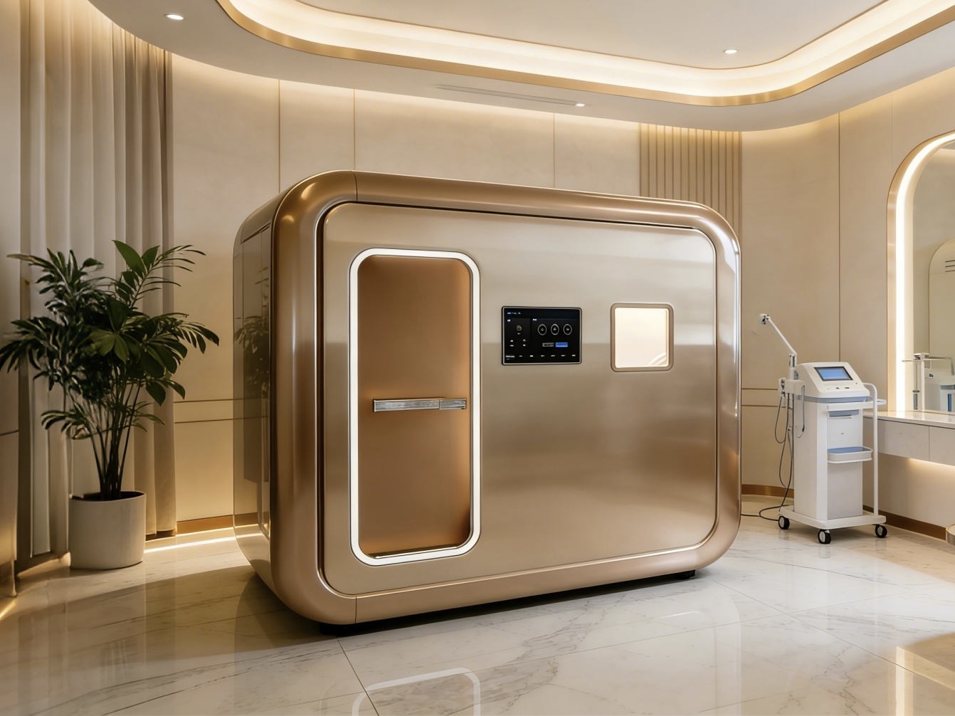 智能体验方面,除了双触控屏与手机 APP 远程控制,还搭载语音控制功能,可通过语音指令调节灯光颜色、空调温度、舱内压力等参数,解放双手更便捷;内置高清影音娱乐系统,配备高保真音响,支持蓝牙、HDMI 连接,可播放音乐、影视、有声读物等内容,搭配 256 色氛围灯,打造沉浸式疗愈空间。同时,舱内设有内外一键通话系统,方便舱内人员与外界实时沟通,突发情况可快速响应。